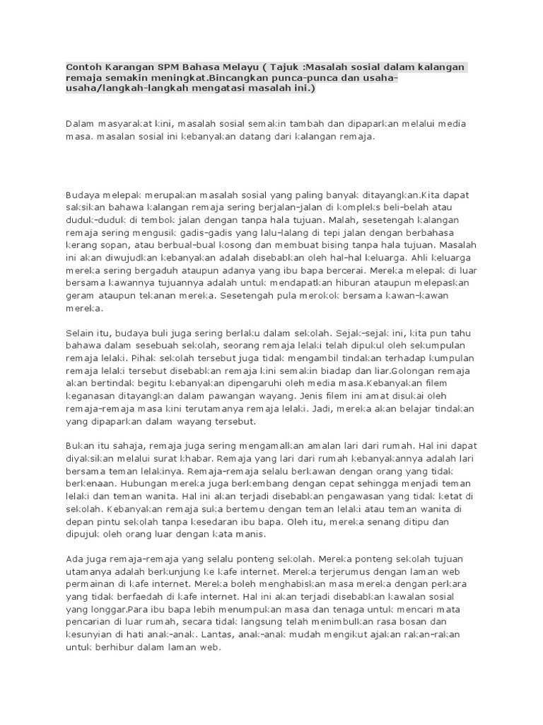 Karangan Contoh Usaha Membanteras Masalah Sosial Dalam Kalangan Remaja Pdf